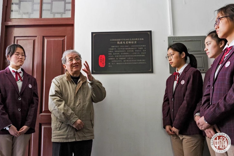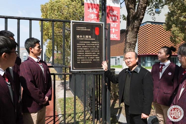 1944年1月6日,在学校大操场,南通中学、南通女师、南通县中三校学生在地下党领导下,联合行动开展禁烟运动,大量鸦片烟和烟灯、烟枪等吸毒工具,在烈火中化为灰烬。学校关工委常务副主任陈文辉向同学们讲述当年的通中学生积极投身革命运动的情景。