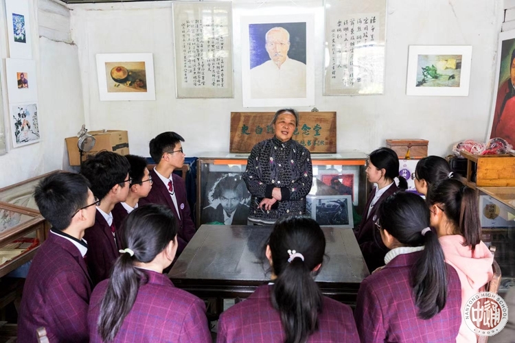 在史白烈士的故居,烈士的侄女施宁女士向同学们讲述烈士战斗的一生。学唱史白烈士作词的革命歌曲《别处哪儿有》。