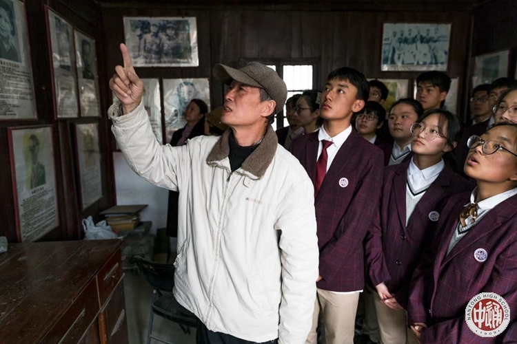 在徐惊百烈士的故居,烈士的侄子徐咸先生给同学们讲述他大伯抗日救国的革命事迹。