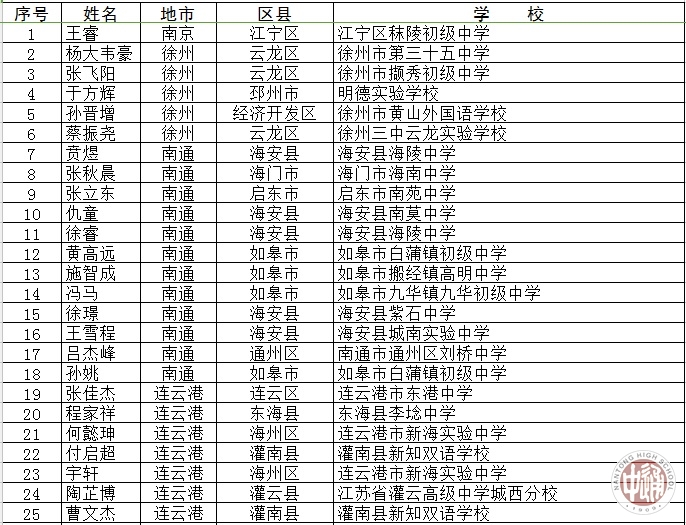 2018年江苏省空军青少年航空学校拟录取名册(南通片)