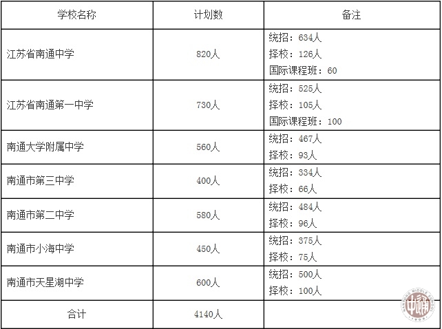 根据《2013年南通市中等学校招生工作意见》(通教发〔2013〕6号)要求,现就南通市区(不含通州区)普通高中招生计划公布如下: