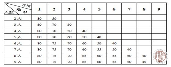 棋类特长生考试评分根据参加考试的人数对照以下评分标准进行评分。
