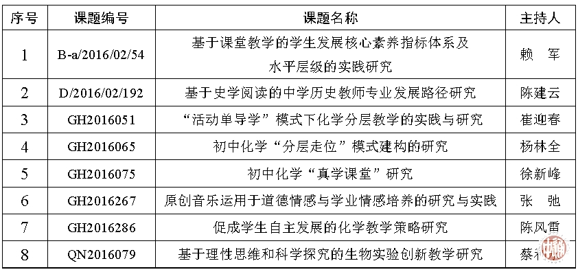 我工作室成员在省市教育科学“十三五”规划2016年度课题申报活动中共有8项课题获准立项。到目前为止,这8项课题均已通过开题论证,并进入正式研究状态。