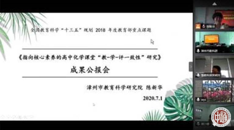 7月1日上午,由福建省漳州市教育科学研究院化学教研员陈新华正高级教师主持的全国教育科学“十三五”规划2018年度教育部重点课题“指向核心素养的高中化学课堂‘教-学-评一致性’研究(课题批准号:DHA180418)”成果公开报告会在腾讯会议“云”上举行。我工作室领衔人、特级教师、二级教授、国家“万人计划”教学名师、“江苏人民教育家培养工程”培养对象陆军应邀参加会议,并担任指导专家。