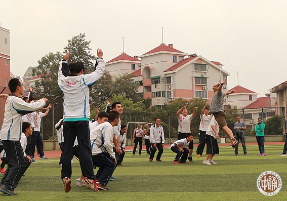 16号晚上是一个难熬的日子,特别感谢同宿舍的陈晓晶老师和我一起备课,两个人在宿舍里跳来跳去,不断地磨手段,改思路;为了一个“炸油条”,两个人在宿舍里爬来爬去,不断修正,完善手段的可操作性和安全性。17日到了学校查看场地的时候发现学校操场周围是有那种台阶的看台的,刚好第一节的高度大约在40公分左右,刚好可以用来做辅助练习,国培班的兄弟姐妹就是给力,我喊了一声,就有很多人来帮我布置场地,虽然布置起来还比较简单,但是大家的热情,让我感受到了集体的力量,团队的精神,大家庭的温暖。