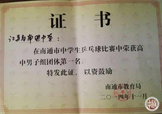 市中学生乒乓球比赛我校取得佳绩 来源:本站原创 发布时间:2014-11-11 21:27:26 浏览次数: 次 【字体:小 大】 在上周六举行的南通市中学生乒乓球比赛中,我校男队荣获高中组男子团体冠军,女队荣获高中组女子团体冠军。其中男队包揽了男子单打前5名,女子单打获得了二、三、四名。 分享到: 【打印正文】