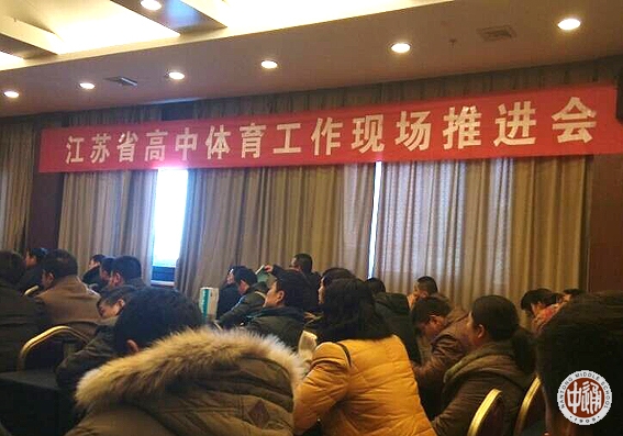 2014年12月17-19日,江苏省高中体育与健康课程基地校推进会苏于洪泽中学举行。省体卫艺处杜伟处长对五年来体质健康促进方面所走过的路进行了总结与反思,从江苏省面临的形势、任务、阶段性的成果与启示、南京国家公祭日的启示和校园足球的选择三个方面作重要讲话。