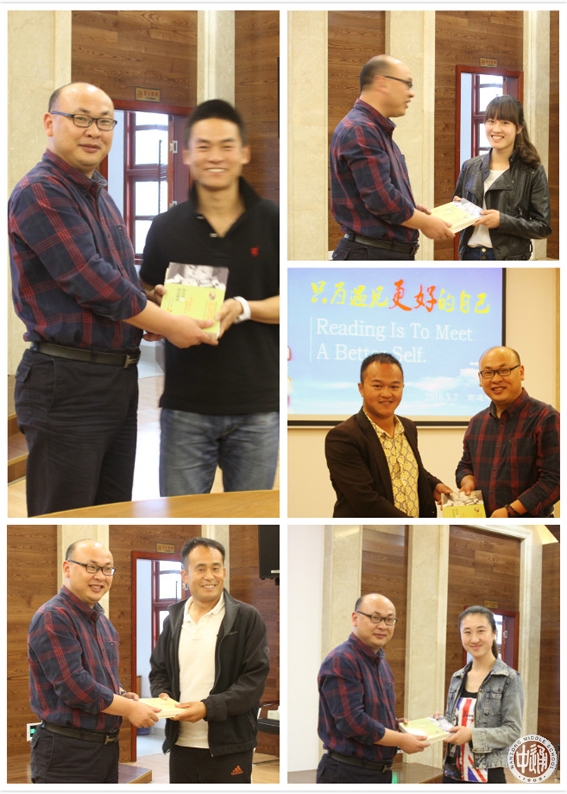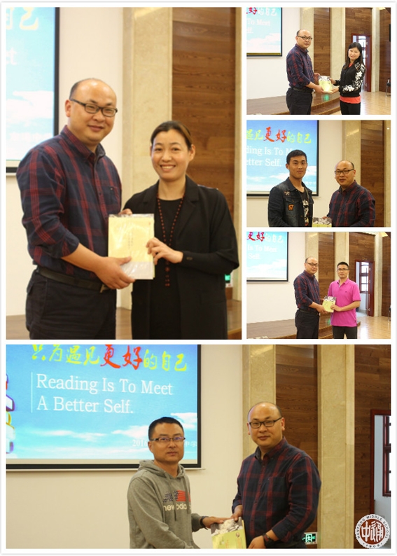 接着,潘雪峰老师结合自己的阅读经历启发我们“为何要读书”“读什么书”“如何读书”,他旁征博引,机智幽默,让我们对阅读充满向往。最后,潘雪峰老师向工作室成员赠送了《斯宾塞的快乐教育》《从有效教学走向卓越教学》两本书,鼓励大家用书籍丰厚自己,不断遇见更好的自己。