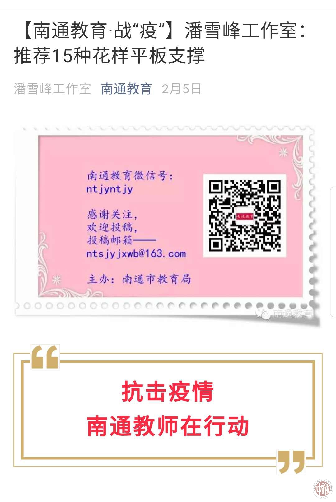 【南通教育·战“疫”】潘雪峰工作室:推荐15种花样平板支撑 来源:本站原创 发布时间:2020-03-19 14:57:51 浏览次数: 次 【字体:小 大】 【南通教育·战“疫”】潘雪峰工作室:推荐15种花样平板支撑 分享到: 【打印正文】