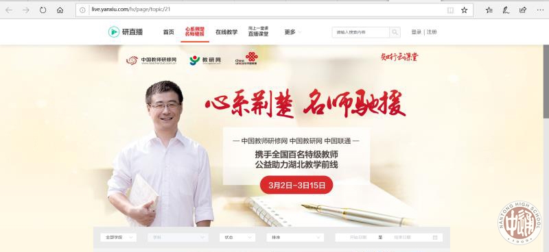 3月2日,由中国教师研修网、教研网携手中国联通集团发起的“心系荆楚,名师驰援:特级教师助力湖北公益送教”活动正式向湖北地区开课。