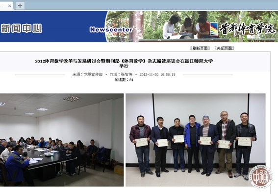 首都体育学院网站刊发《2012体育教学改革与发展研讨会暨期刊部《体育教学》杂志编读座谈会在浙江师范大学举行》新闻,其中潘雪峰老师在会议上的发言被部分摘登报道。