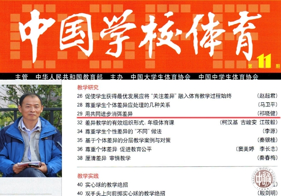 祝贺工作室祁晓健老师在中国学校体育专题研讨文章刊出