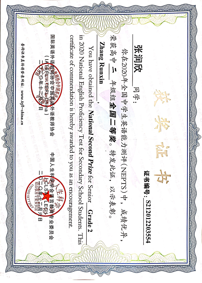英语学科教师辅导学生参加全国英语能力测评获奖