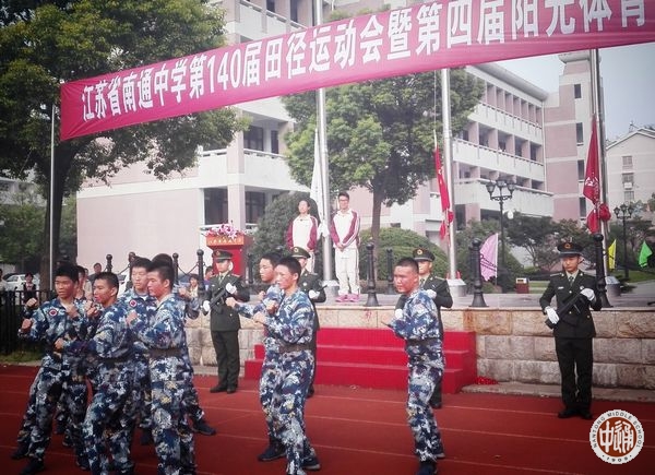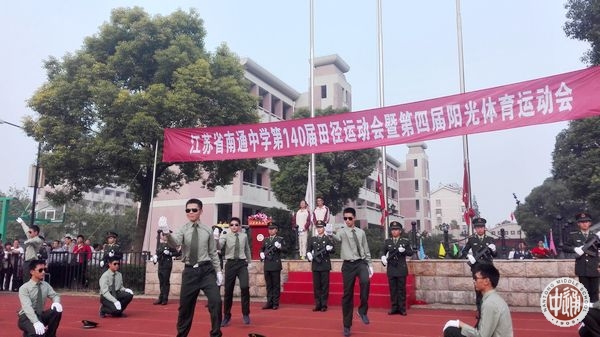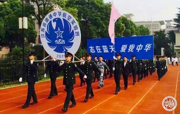“军人的风采,必胜的信念,迎面走来的是高一航空班,他们青春朝气,英姿焕发!作为青少年航空学校的‘黄埔一期生’‘ 身体强、学业优、作风硬’是他们的目标。“志在蓝天 爱我中华”是他们的雄心壮志!看,井然有序的步伐,是因他们团结友爱;热情洋溢的舞蹈,是因他们乐观阳光;血气方刚的武术,是因他们勇敢坚强!我们相信,付出总有回报,梦想在飞腾,祖国在召唤,奋斗吧!航空少年! ”2015年10月22日江苏省南通中学第140届校运会开幕式上,航空班入场式解说词。