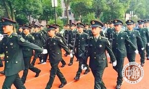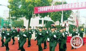 第四部分:舞蹈队列。在欢快活泼的《小苹果》音乐中,11名学员表演的军舞更是将入场式气氛推到了最高潮。轻松诙谐、幽默风趣的舞蹈,一改军人的严肃深沉,让校运会