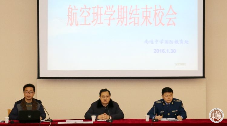 1月30日中午,学校国际国防教育处组织航空班全体学员和家长在科学楼三楼报告厅举行学期结束大会。会议由国际国防教育处副主任蒋卫星主持,副校长沈惠祥、空军驻校干部队长李金泽、教导员王瑞、班主任苏斌参加会议。