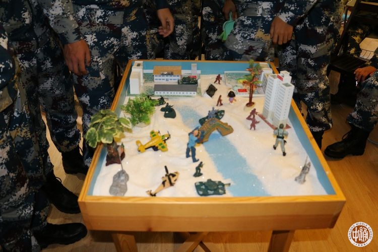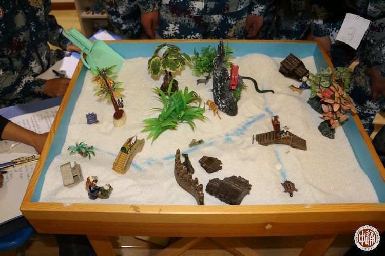 每周一下午,极其富有想法并能够紧贴学员们实际的班主任老师,都会有针对性的组织各类主题班会。5月23日,国家三级心理咨询师蒋卫星老师更是拿出自己的看家本领——“沙盘游戏”。一盘细沙,一架子各式各样的物件造型,加上组织者的关注与投入,参与者的自由表现与创造,构成了沙盘游戏的最基本的要素。在简易的设置中,参与者内心的世界得以呈现,心灵能够充实与发展,治愈与转化也获得了可能。