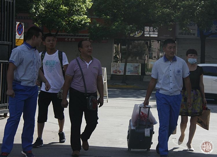 “我们刚到校门口的公路上,高二航空班的学生就快步主动迎上来,抢着帮我们搬运行李;走到校门口,学生们带着绶带列队迎候,‘同学您好’的问候铿锵有力,着实把我吓了一跳!迎面而来的热情把我和儿子弄得有点不知所措,真的很感动。”