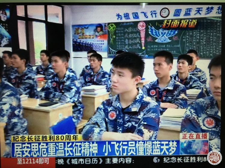 为了讴歌红军的丰功伟绩,我校航空班于10月21日 举行了纪念红军长征胜利80周年专题活动。通过活动,让革命的种子、艰苦奋斗的种子、无私奉献的种子早早根植于未来的飞行员心中。活动现场回放了南通电视台《城市日历》栏目对此进行的专题封面报道。