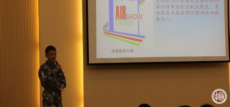 中国国际航空航天博览会(俗称珠海航展),则是中国空空军面向世界展现强盛现在和灿烂未来的广阔平台。非常有幸的是,我校作为全国首批16所空军青少年航空学校承办中学之一受邀观摩了10月31至11月2日在珠海举行的第十一届中国国际航空航天博览会。活动现场,高一航空班的朱炫丞同学作为观摩学员代表向全体航空班同学介绍第十一届航展的情况,图文并茂的介绍极大的震撼了每一位航空班学员。