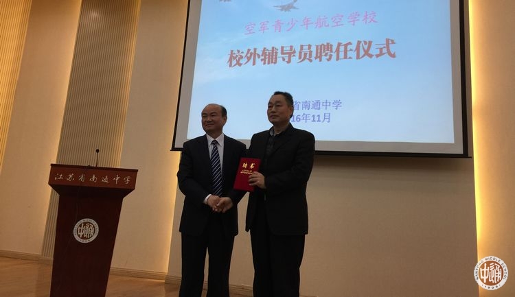 成为飞行员,是每位航空班学员心中的梦想!活动现场聘任了南通市质量技术监督局副局长徐新华为空军青少年航空学校校外辅导员。学校党委书记陈文辉向徐新华同志颁发了聘书。徐新华,转业前系某部飞行训练旅旅长,特级飞行员,某飞行学院副院长等职,曾荣立个人三等功4次、二等功3次,安,先后培养歼击机飞行员25批,所培养的飞行员广泛分布于海、空军等多个战斗部队。徐新华同志还为全体航空班学员作了《让我们一起向往和热爱蓝天》的专题报告,受到了所有学员的热烈欢迎。