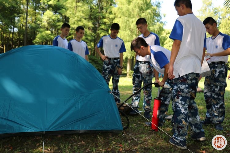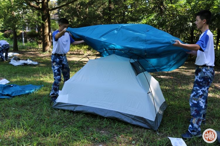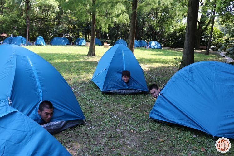 我们取出行囊中帐篷的各样零件,两两互助,按着说明书上要求搭起帐篷,对于我们大多数学员都是第一次体验搭帐篷,我们都给自己的成果点上千千万万个赞。有的学员时时刻刻都在活跃氛围,藏进各自的帐篷中,仅露出一个头,放双鞋在帐篷外,活像一只乌龟从壳里探出脑袋来,空气中,耳畔,心里都回荡着学员们爽朗的笑声。
