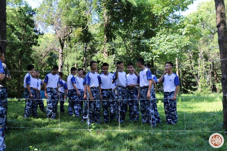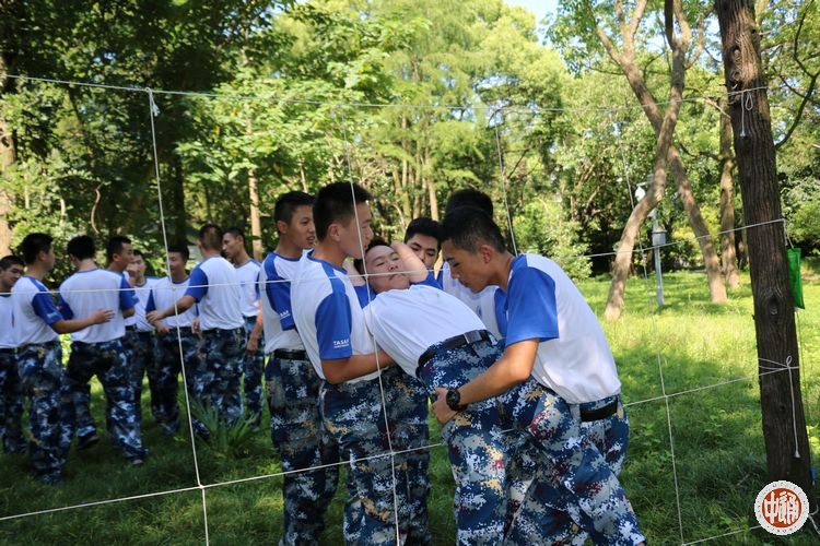 穿越电网是一项需要耐心,细心的环节。九宫格由绳子编织而成,被视作电网,触及者即阵亡淘汰。学员们绞尽脑汁,想象着各式穿越“电网”的方法,可事实却不是想象的那么简单,前几组的学员一而再再而三地栽在一个地方,或是出于大意,或是实在无能为力,后几组的学员吸取前几组失败的教训,更为细心,穿越的方法也别出心裁,最多的小组人数达到了8人,只有1人未过。任务结束后,教员进行点评,他将此时的活动和真正战场上穿越敌战区进行对比,告诉我们面对这样的险境我们定要耐心,细心,决不气馁!
