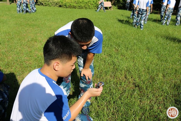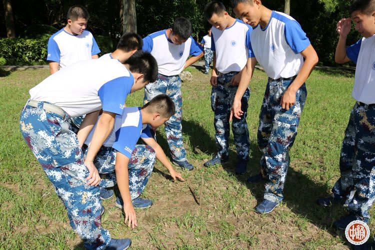 教员指令:“在战场上要想活下来,必须学会判定方向、战场自救及伪装防护。”