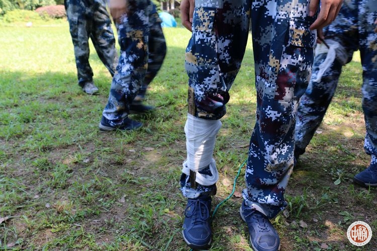 自救和互救在战争是格外重要,在教员“一讲一做”的方式下,我们各组成员进行伤口包扎,骨折固定,护送伤员,深刻体会真正救护的重要性。