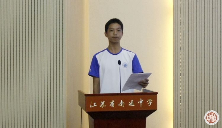 学员代表张存轩在表态发言中回顾南通中学报到后两周生活和训练的点点滴滴,对学校、老师、教官对他们的爱护帮助表示深深的谢意,对一路支持他们追寻空天梦想的招飞人还有家长们表达了感恩之情。他说同学们来自不同的城市,但今后将拥有同一个名字,同一个梦想,为自己能成为南通中学航空实验班的三期学员感到骄傲,更会以实际行动努力学习刻苦训练,力争成为王牌中的王牌,早日实现翱翔蓝天的梦想。