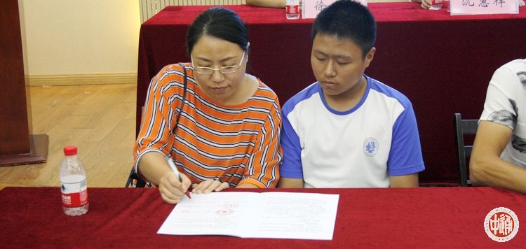 仪式最后,南京招飞中心、南通中学、学员及家长三方共同签署了《空军青少年航空学校培养协议书》。