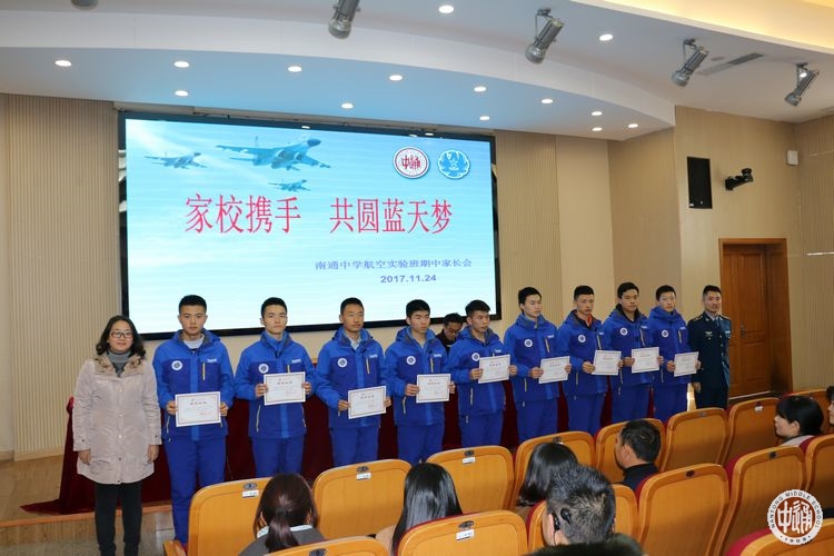 根据《中国人民解放军空军政治工作部关于评选青少年航空学校优秀学生的电话通知》的具体精神,参照“立志空天、品学兼优”的评选标准,结合我校实际情况,家长会首先对我校在2016—2017学年度及2017—2018学年度第一学期期中考试中表现突出的航空班优学员进行了表彰,并颁发证书。优秀学员还将获得空军每人2000元的奖学金。