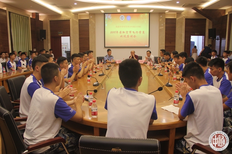 7月16日下午,国际部报告厅里洋溢着喜庆欢快的气氛。“南通中学空军青少年航空学校•2018年录取空军飞行学员欢送座谈会”在此隆重举行。16名正式录取空军航空大学的飞行学员、高三航空班任课教师、高一航空班全体学生及部分家长济济一堂,共话同窗情、战友情和师生情。学校党委书记陈文辉、副校长沈惠祥、空军代表原驻校干部李金泽出席欢送座谈会。欢送会由国际(国防)教育处副主任蒋卫星主持。