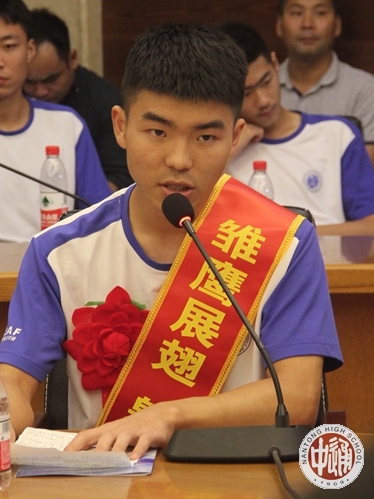 16位飞行学员雏鹰展翅,梦圆蓝天,在高一学弟们的心理也产生巨大了波澜,高一学生代表王海洋在谈到自己感受时指出,高一的学弟们一定会以学长们为榜样,学习科学文化知识的同时保护好身体,争取两年后能有更多的同学能考上空军航空大学,为祖国飞行、圆蓝天梦想!
