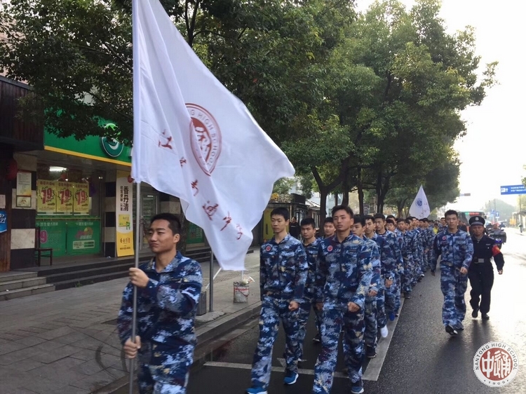 走在沥青的柏油马路上,听不见私语,耳边唯有响亮的口号声和那清晰而统一的脚步声,节奏鲜明而轻快。在拉练途中,我们带着满满的激情、意志、体能;我们的歌声响彻了整条街道,唱进了我们每个人的心中。我们自豪,因为我们是通中人;我们自律,因为我们是航校人;我们有爱,因为我们是一个集体。不愧对胸前制式服装的标志,不愧对在阳光下舞动的旗帜!
