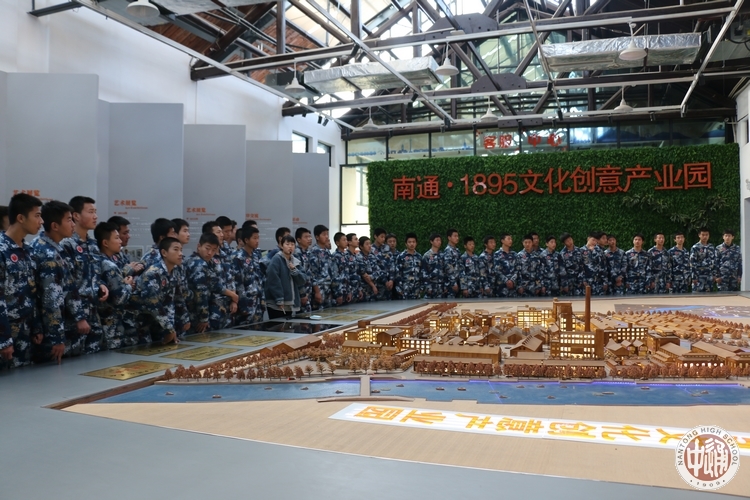 沿着码头向着小镇内部走去,一个不起眼的牌子引起我们的注意,“1895工业园区”,远处高耸的大烟囱,一座座空荡的厂房,依稀可从那青砖石瓦上瞥见当年小镇的风华,小镇的风情万种。漫步于园区之内,空气中弥漫着历史带来的古色古韵的气息。这是当年张謇工业起步之地,在他的人生历程之中“父教育,母实业”的思想随处可见,他给中国带来的不仅仅是一个个新兴的民族资本工业,更是中国未来的繁华昌盛,教育事业的生生不息。他承办南通女子师范,南通中学等多所学校,造就了当今南通教育事业的问鼎苍穹。张謇题词的“诚恒”二字校训秉承在心,身穿通中与空军的特色校服,肩扛航空班,通中大旗,迎着众人的目光,心中感慨之情便更加浓厚起来,这次远足也变得更加有意义。(高二3班 钱鸿悦)