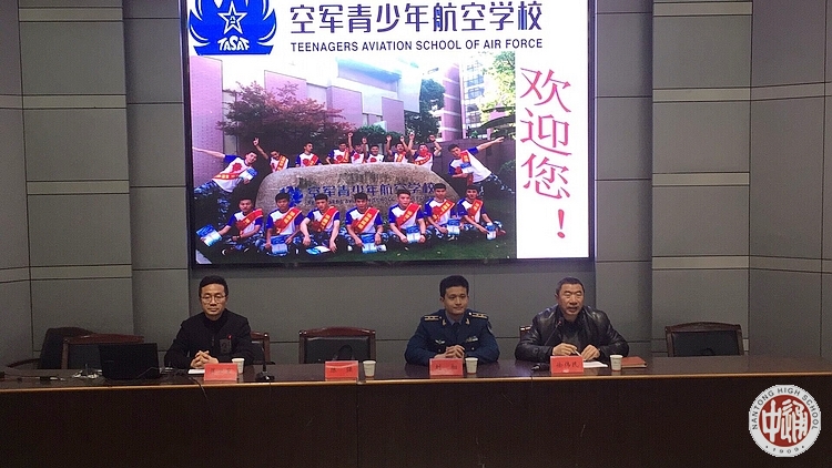 为进一步扩大我校航空班的办学声誉和影响力,学校高度重视,组织精干力量,积极协同空军招飞局南京选拔中心进行招生宣传。学校选派国际(国防)教育处副主任蒋卫星奔赴南通、盐城、泰州等地市开展招生宣传。