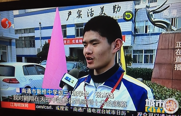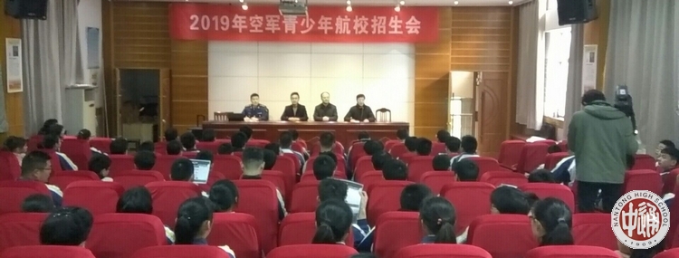 在南通市新桥中学,空军驻校干部曹俊强队长首先向该校初三应届毕业生介绍了航空班招生的相关条件、政策和待遇等。蒋卫星副主任着重介绍了空军少航校的建设和发展情况,航空班学员的学习、生活等具体现状,尤其是原毕业于新桥中学的季嘉炜同学在通中航空班三年特别的高中生涯、以及现在他就读于空军航空大学成为国家飞行学员的成长经历,激发了该校学生的浓厚兴趣和对蓝天的无限向往。南通电视台《城市日历》、《江海晚报》《南通日报》等多家媒体对此进行了报道,对南通地区的招生宣传产生了较好的拓展辐射作用。