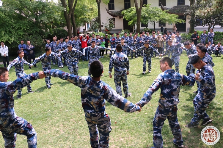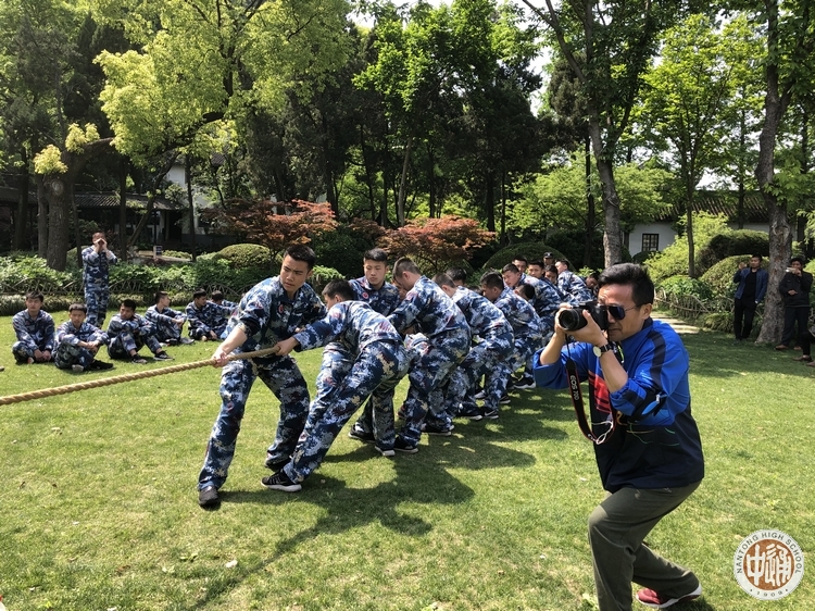 午后,航空班学员还开展了心理团辅活动。在南通大学心理学专业研究生的指导下,学员们热情高涨、满怀激动和兴奋的进行了“解开千千结”和“纸上站爱兵”心理游戏活动。学员左明磊表示:“通过解开千千结活动,我们更加懂得了集体的力量是无穷的,只有依靠集体的力量,我们才能解开生活中的各种“结“!“学员冯马表示:”在纸上站爱兵活动中,我们团队12个人根据老师的要求积极商讨方案,最后成功的在那么点大的报纸上足足站了12个人!这个游戏给我的感触很深,只要大家团结,就能取得优异的成绩。团结起来,没有事情做不到!”心理团辅活动结束后,高一航空班和高二航空班之间还开展了激烈的拔河比赛。