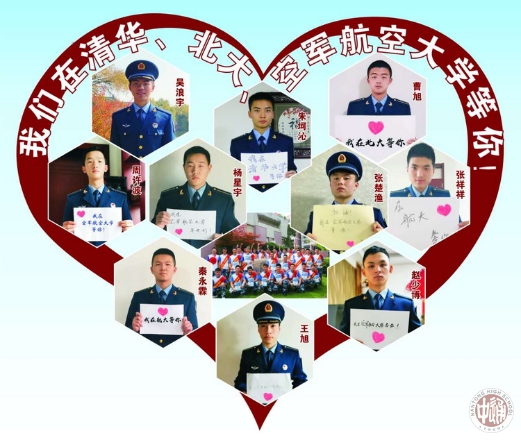 2019届航空实验班录取空军航空大学的学生们隔空发来了鼓励视频、照片和寄语,分享了信念、恒心以及语文、数学、英语等学科学习、心理调适、体能训练等多方面的经验,并向学弟们发出热情的召唤!我们在清华、北大、空军航空大学等你!