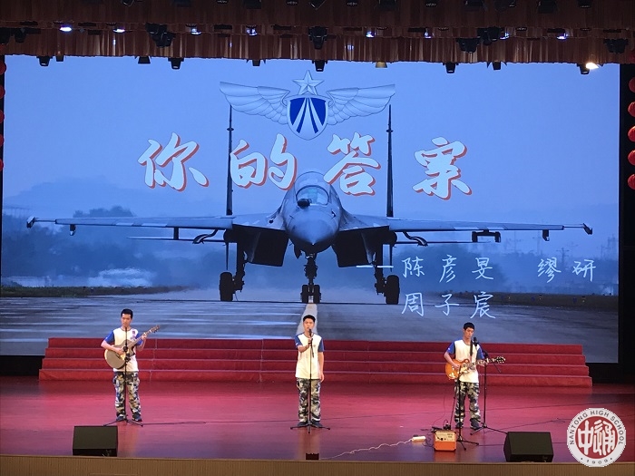 三年的秋冬春夏,航空班学员们一道走过;三年的酸甜苦辣,航空班学员们共同品尝。高三4班俞希鹏同学作为学生代表汇报了自己的三年感悟。他说,三年的航校生活,激起我们了的青春活力,磨砺了我们的坚强意志;三年的航校生活,更让我们懂得了未来军人所肩负的义务与责任;三年的航校生活,也让我们懂得了感恩,感恩父母关爱、感恩老师教诲、感恩祖国空军!