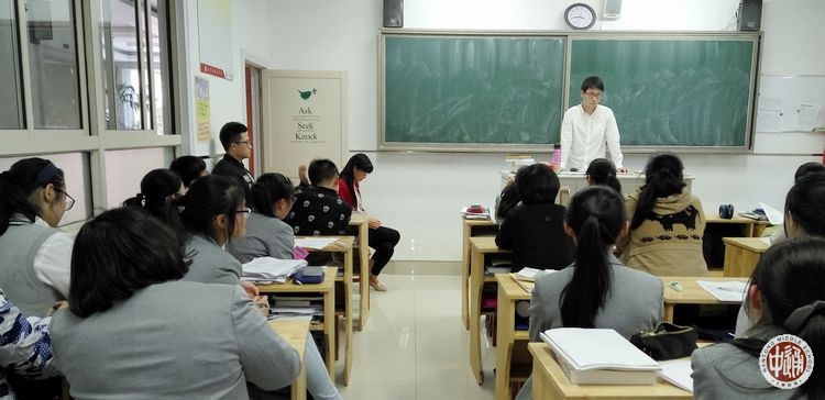 5月16日下午, 2015届毕业生陈崟和吴江森同学回到母校,为高一年级的学弟学妹上了一堂特别班会课。在课堂上,两位同学与大家分享了通中国际班的学习经验,介绍了在美国的大学生活。班主任和升学指导老师也出席了这次活动。