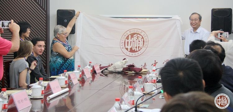 校长成锦平首先代表学校向师生代表团一行致欢迎辞。成校长指出,我校虽然是百年老校,但充满活力。近年来,学校通过多种途径探索出符合我校发展特色的教育国际化发展之路,致力于培养具有“创新精神、社会责任、国际视野、民族情怀”的新时代学生,取得了突出的业绩。国际化合作办学正在成为我校重要的办学特色。欢迎仪式上,成锦平代表学校向参访团赠送了校旗校服纪念品。