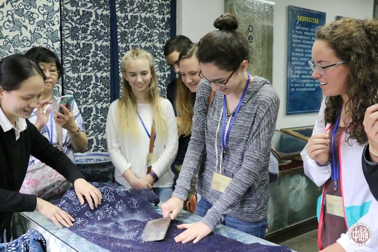 南通,是中国近代一城。美国师生代表团游览了通城的翡翠项链---濠河,深切感悟“舟行碧波上 人在画中游”意境;在中国珠算博物馆和蓝印花布艺术馆,美国师生叹服于中华民族的古老悠久和勤劳智慧。