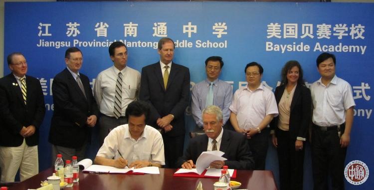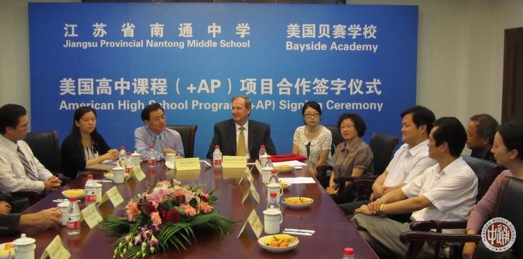 我校与美国贝赛学校关于美国高中课程(+AP)项目合作的签字仪式于6月10日下午在上海格致中学举行,我校校长姚天勇与美国贝赛学校校长Thomas Johnson分别在协议书上签字。出席签字仪式的还有我校校长助理沈惠祥、首届AP课程班班主任孙晔。