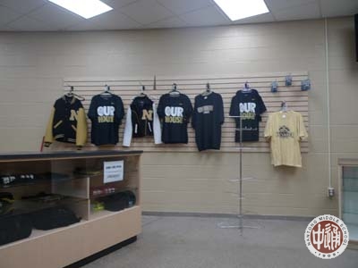 | 学校大厅的右手边有一个并不算小的房间,里面挂满了各种款式的运动校服,但是大门紧闭,空无一人。据校长介绍,这是由学生负责经营的校服商店,只有每天放学后才会营业,那时会是另外一番热闹景象。友好访问结束时,学校赠予我校学生每人一件运动衫留作纪念。 | |