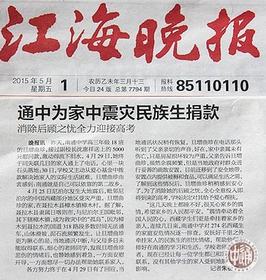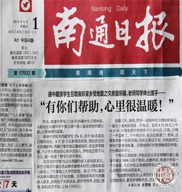 5月1日的《南通日报》《江海晚报》对我校的爱心捐助活动进行了专题报道。