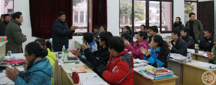 1月27日上午,在我市教育局副局长王笑君(上图正面左一)陪同下,西藏自治区党委教育工委书记拉巴(正面右一)前来我校访问,看望在我校就读的50多名西藏生。我校校长姚天勇向拉巴书记详细汇报了近年来西藏生在我校的学习和生活情况,以及我校对西藏生教育管理工作中不断探索的心得体会,得到拉巴书记的充分肯定和赞扬。 左图拉巴书记向我校赠送布达拉宫图案刺绣唐卡留作纪念,下图拉巴书记来到正在自习的西藏生教室看望师生,祝愿大家为建设祖国和美好西藏而努力学习。 |