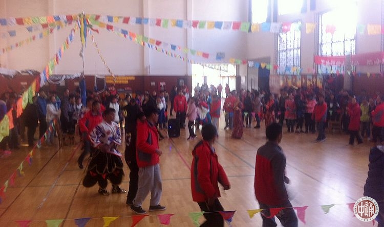 12月24日中午,藏文化宣传第一阶段在学校老体育馆举行。健雄馆事先进行了具有民族特色的布置,以营造浓厚的藏文化氛围:馆的上方飘起了五彩的经幡,墙壁上挂起了藏戏面具以及西藏各大节日的宣传展板。在活动开始之时,馆外燃烧了桑。桑是一种自然植物,用于大型活动中宾客欢迎。一进门,身着民族服装的西藏生手捧切玛,热情欢迎老师和同学的到来。