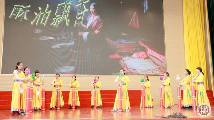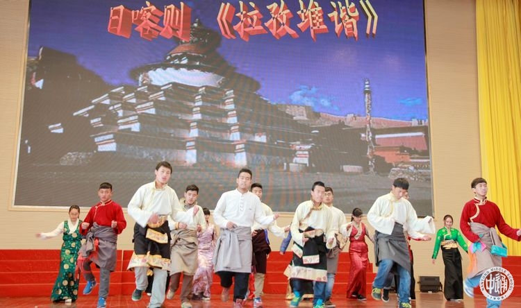 12月25日中午,藏文化宣传第二阶段在该校新健雄馆举行。本阶段藏文化宣传主要以西藏民族歌舞文娱表演为主,西藏生们通过40分钟近10支民族歌舞的表演尽情演绎了藏文化的独特魅力。其中,最为精彩的莫过于舞蹈《拉孜堆谐》和《酥油飘香》。高一年级普布扎西、格桑卓嘎、边旦桑布等表演的《拉孜堆谐》获得了在场观众的阵阵掌声。 “堆谐”有近千年的悠久历史,是藏族群众喜闻乐见的一种民间传统歌舞艺术。在日喀则拉孜只要是聚会随时都能听到堆谐优美的歌声、悦耳的琴声和欢快的舞步声。此舞主要依靠节奏表演,注重脚下功夫,以弹唱与舞蹈相结合,旋律优美,粗犷豪放,充分展示了今日西藏新农村的新生活、新变化、新发展。高二年级洛桑措姆、益西德吉、向巴旺秋等表演的舞蹈《酥油飘香》把整台活动的气氛推向了高潮。舞台上,她们身着美丽的民族服饰,别上独特的头饰、胸饰和腰饰,婀娜多姿、摇曳生辉的体态和自信、活泼、爽朗的气质,充分表现了新时期藏民在丰收劳作时幸福欢乐、蓬勃向上的精神面貌,抒发了对新社会美好生活的讴歌之情。